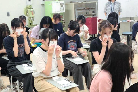 県内企業と共同して基礎研究から製品開発に携わっているお二人からお話しを聞き、さらに体験・施設見学を通して学内では得られない多くの学びを獲得していました。