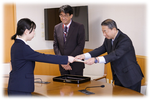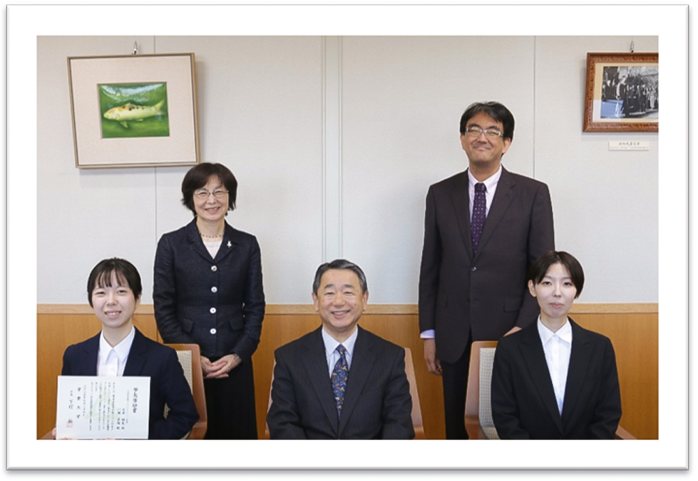 学長奨励賞(個人1件)の学生へ下村学長より賞状が手渡されました。