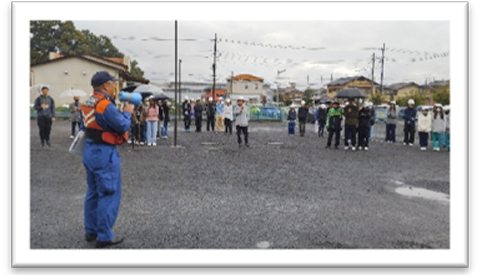 小雨が降るあいにくの天候でしたが、入居する学生(交換留学生を含む)約100名が参加しました。茜梅寮・姫ケ丘寮では茜梅寮の1階から出火、国際交流会館では1階共同キッチンから出火を想定した通報訓練・避難訓練を実施し、学生は各々の役割を果たすとともに、安全確実に避難することができました。