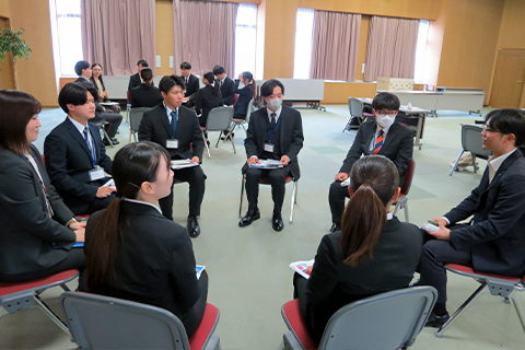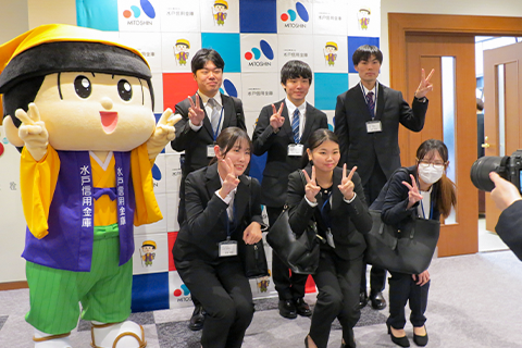 水戸信用金庫は本店(水戸市)を訪問し、本部10部署の見学や採用担当者との座談会を行っていただきました。学生たちは、各金融機関の特徴や企業理念である「もっとも身近な金融機関」としてお客様との関わり方などを学び、金融業界への理解を深めることができました。
