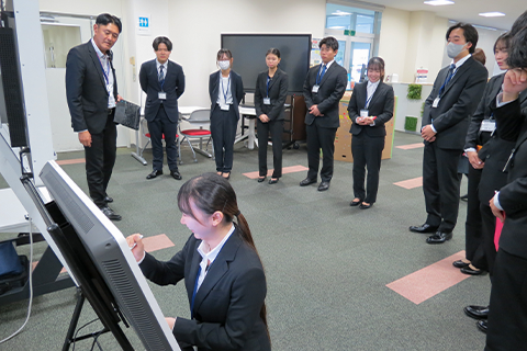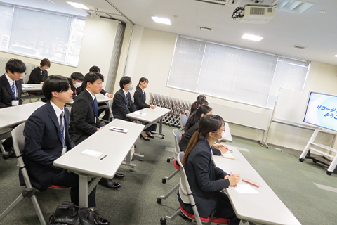 リコージャパン㈱は茨城支社(水戸市)を訪問し、社内見学や大学OGとの質問会を行っていただきました。学生たちは、製品の体験を通して企業理解を深めるとともに、質問会を通して、仕事に対する熱意ややりがいを感じていました。