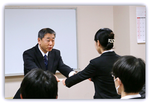 また、下村学長より、「本日の表彰は、皆さんが日々努力をなさった証だと思います。具体的な形できちんと成果を出された皆さん、本当におめでとうございます。また、皆さんの日々の取り組む姿が他の学生の模範となるものです。本日の表彰を受けたことを、誇りとして、自信をもってこれからの生活を送ってほしいと思います。今後ますますのご活躍を祈念いたします。」とのお言葉がありました。
