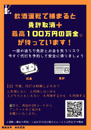 【学科活動】飲酒運転根絶キャンペーンを実施しました!(茨城県警察×常磐大学本荘ゼミ)