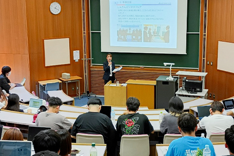 2025年7月24日に、経営学科の専攻科目である「地域金融論」にて水戸信用金庫 営業統括部 地域活性室 副調査役の中川しのぶ氏をお招きし、特別講義をしていただきました。