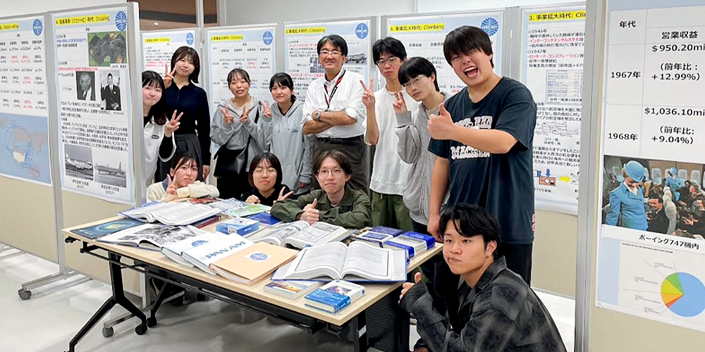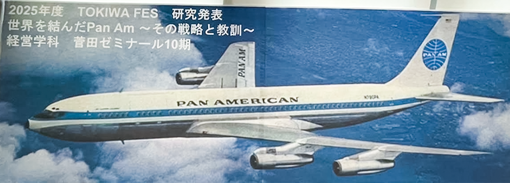 菅田ゼミナール10期(3年生)の学生達は世界的な国際航空のパイオニアであるPan American航空がどのように発展し、なぜ倒産に至ったのか、という問題意識のもと、同社の経営史を分析し考察を進めました。