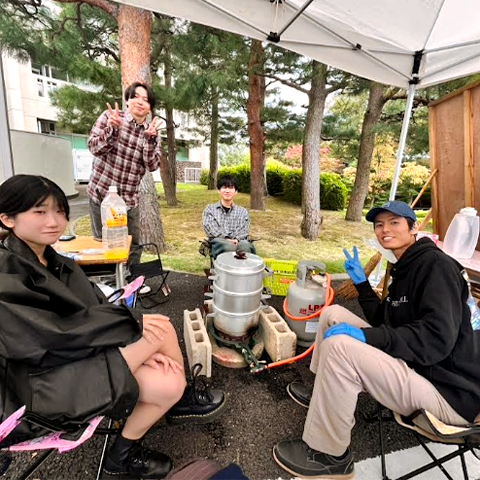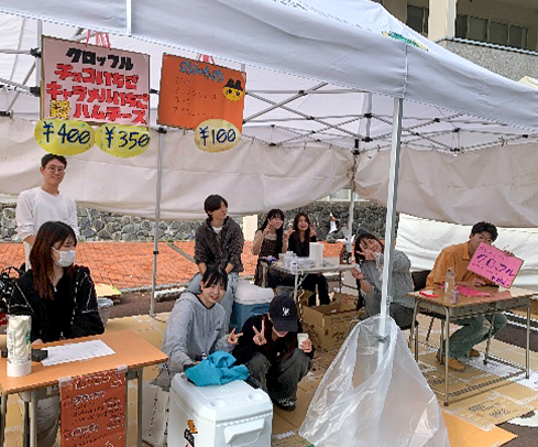桑原ゼミでは、ドリンクを販売する模擬店と休憩所を展開し、学生同士のチームワークで大いに盛り上がりました。1日だけの出店でしたが、多くの学生が訪れ完売することができました。