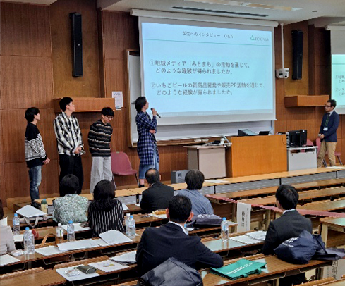 また、地域連携研究支援センター主催の2025年度地域連携シンポジウム「実学で拓く学生主体の地域連携」で2024年度の「ビジネス専門演習(ICTマーケティングクラス)」のプロジェクト成果について4年生(1期生)の学生と発表及びパネルディスカッションを行いました。パネルディスカッションでは、参加者の皆様から多数のご質問をいただき、活発な意見交換が行われました。