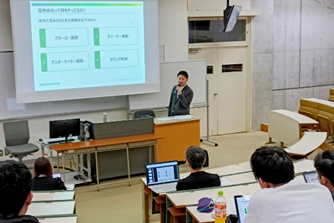 「ファイナンス基礎論」で大和証券水戸支店長による特別講義を実施しました