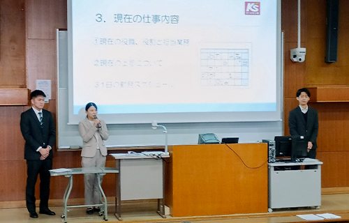 翌週の12月18日には、常磐大学卒業生である従業員2人が授業を担当していただきました。