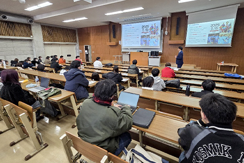 12月17日に経営学科の専攻科目である「サービス産業論」(担当:村中均教授)で、2025年シーズンJ2リーグ優勝・J1リーグ昇格を決めた(株)フットボールクラブ水戸ホーリーホック代表取締役社長の小島耕氏をお招きし、講義をしていただきました。