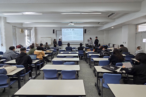 1月14日に、経営学科専攻科目「マーケティング演習」(担当:村中均教授)で秋セメスターに取り組んだ「常磐大学生の水戸ホーリーホックと余暇と関心に関する意識・実態調査プロジェクト」の報告会が、水戸ホーリーホックのスタッフに出席していただき、開催されました。