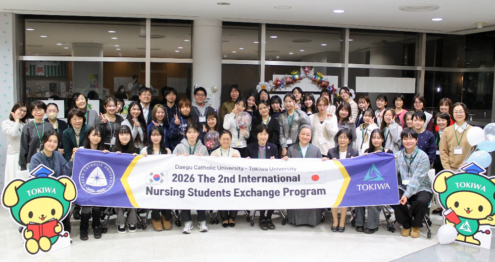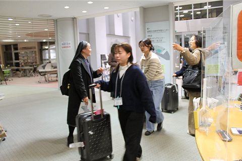 1月13日(火)、韓国の大邱カトリック大学看護学部の学生さん10名とJin先生をお迎えしました。天候の都合で飛行機が遅れましたが、無事に常磐に到着。18時30分。 看護学部教職員+学生、国際語学学習センター職員+協力学生でお迎えし歓迎会をしました。