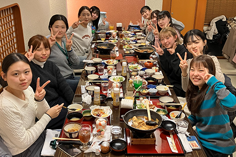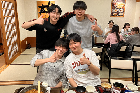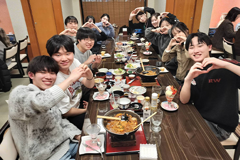 1月14日18時からばんどう太郎を会場に、DCU学生10名、本学学生(1~4年生)12名、DCU のJin先生、通訳の相原先生、本学教員6名 の総勢30名で、交流食事会を開きました。