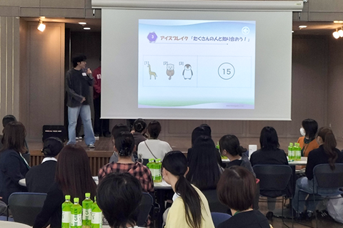 フレッシュな1年生71名と在校生・教員が参加し、自己紹介ゲームや交流レクリエーションを通して、初対面の学生同士、教員同士がお互いを知り合う良い機会となりました。