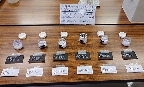 写真2 プラスチック素材の見本とクイズ