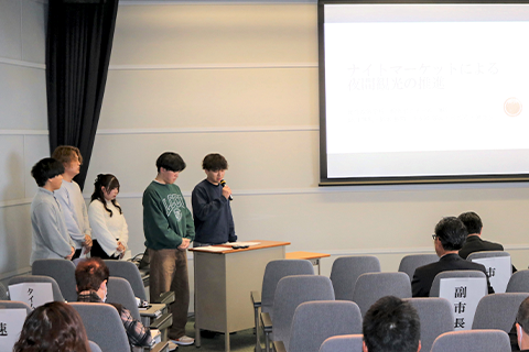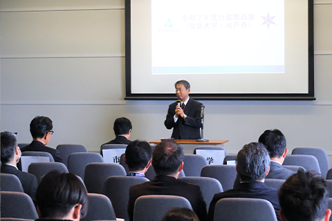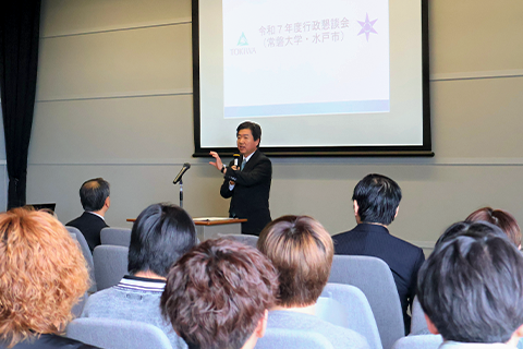 水戸市行政懇談会が本学で開催され、総合政策学科の学生が市長に政策提言しました